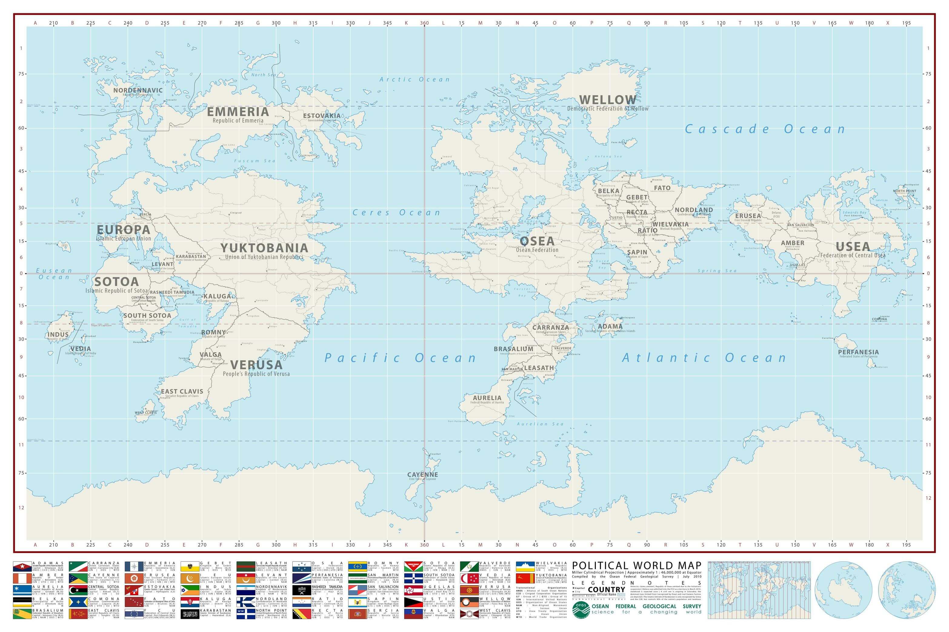Oseanski kontinent jedan je od najvećih kontinenata na planeti i dom je velikom broju ljudi. Ovdje su vođeni brojni sukobi, nadmašujući broj poznatih sukoba na bilo kojem drugom kontinentu. Kontinent je podijeljen u najmanje desetak zemalja. Poznate zemlje i njihov položaj na oseanskom kontinentu su sljedeći: