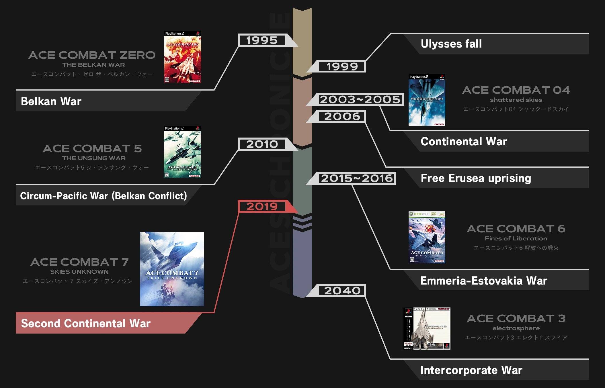 U povijesti Strangereala dogodio se niz glavnih događaja, od kojih je većina bila zastupljena u "Numbered Series" Ace Combat igrama. Oni su sljedeći: